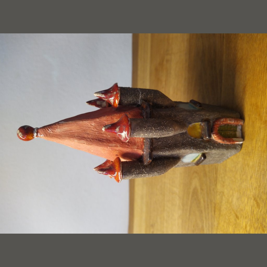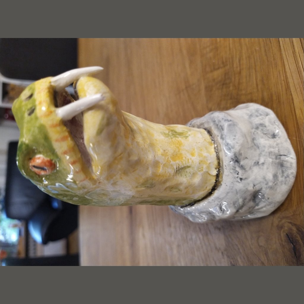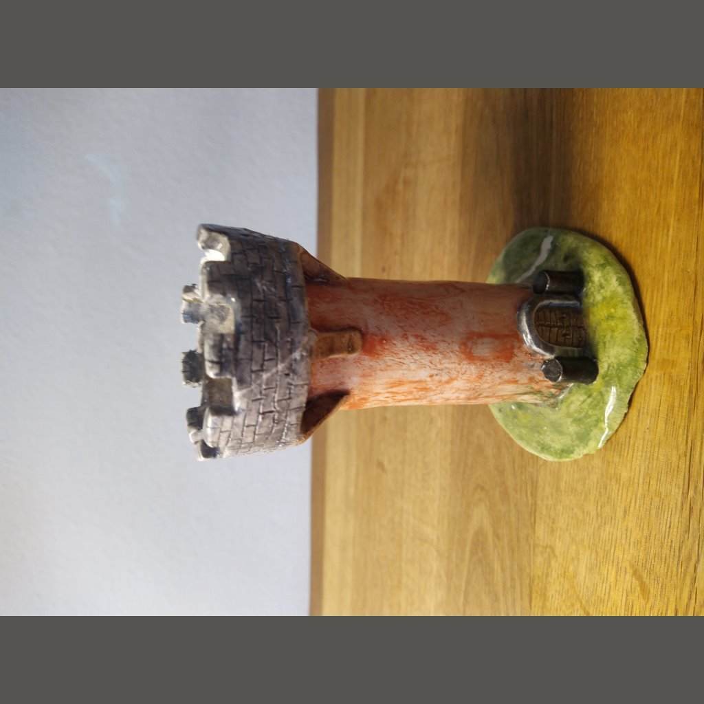 Ich versuche beim Töpfern realistisch zu sein und habe bisher Tiere und Türme versucht. Die Türme sind haben schon einen Krieg mit einem Sturm hinter sich nachdem sie im freien standen. Sie mussten daher schon einmal restauriert werden. Auch die Schlange musste schon ein wenig Zahn einbüsen.