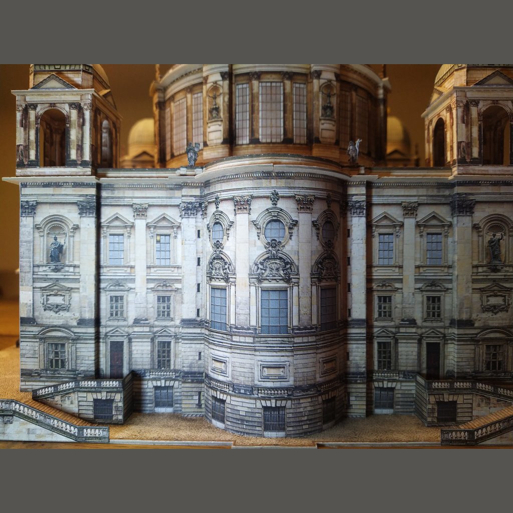 Das Modell des Berliner Doms ist vom Schreiber Verlag. Nachdem ich die Dresdner Frauenkirche fertig hatte, zog es mich wieder zu einem Architekturmodell. Es war insgesamt schön zu bauen, nimmt aber leider viel Platz weg. Der Berliner Dom war mir bisher unbekannt. Erst später bin ich einmal bei einem Trip in Berlin daran vorbeigelaufen.