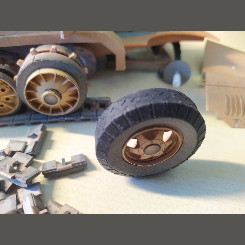 Ich habe das Modell ausgewählt, weil ich den Bau von Kettenfahrzeugen gerne mag. Es ist außerdem ein Kettenfahrzeug mit Vorderrädern, die dann