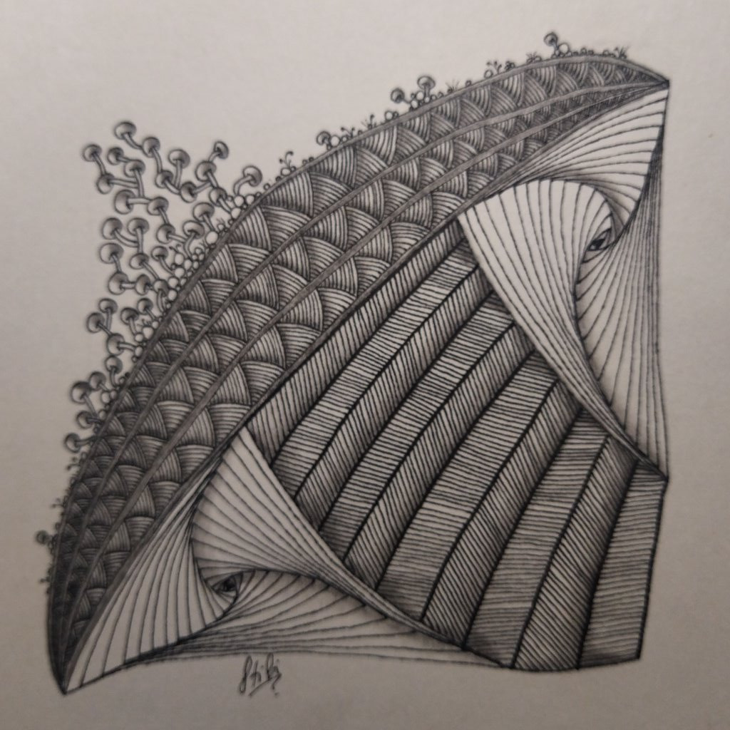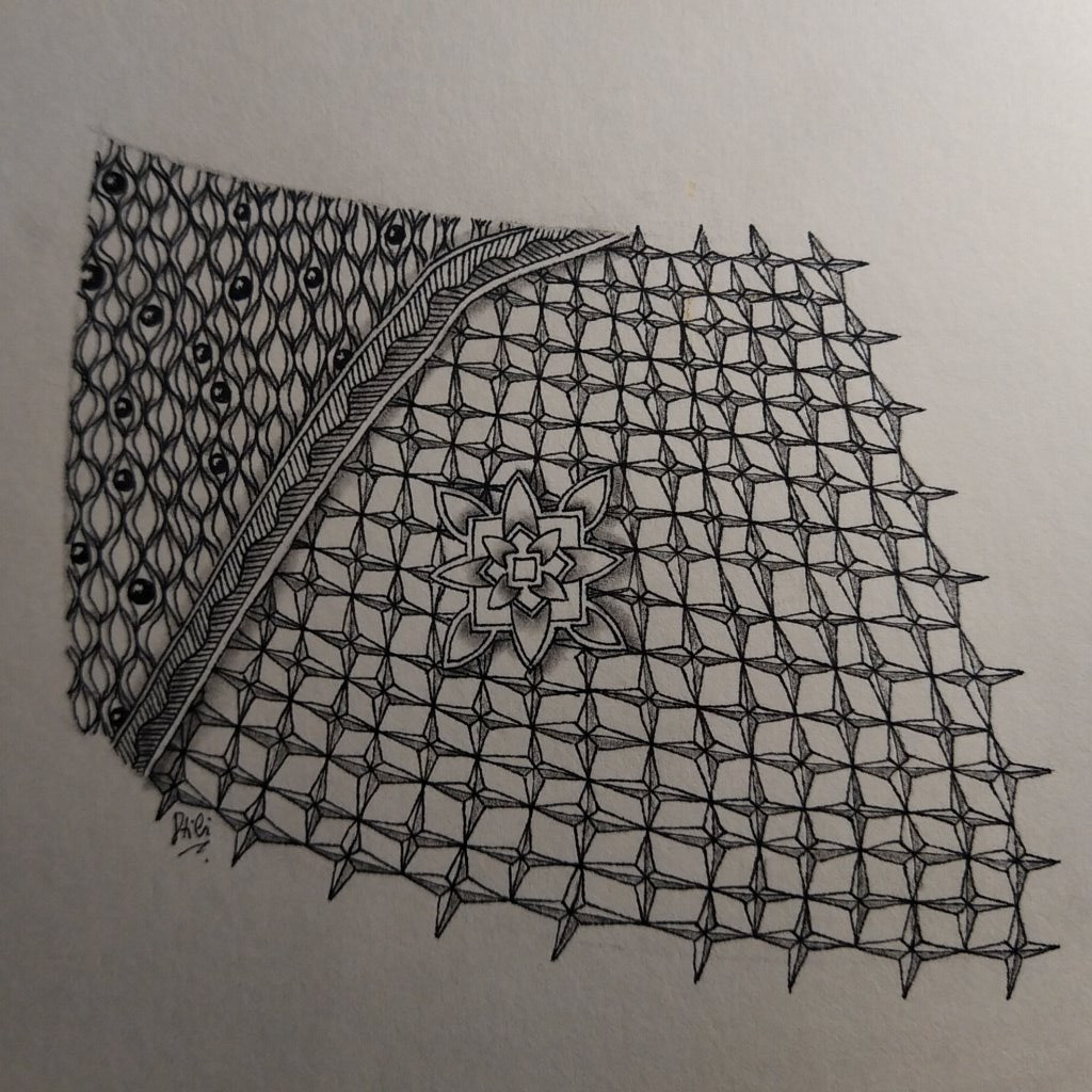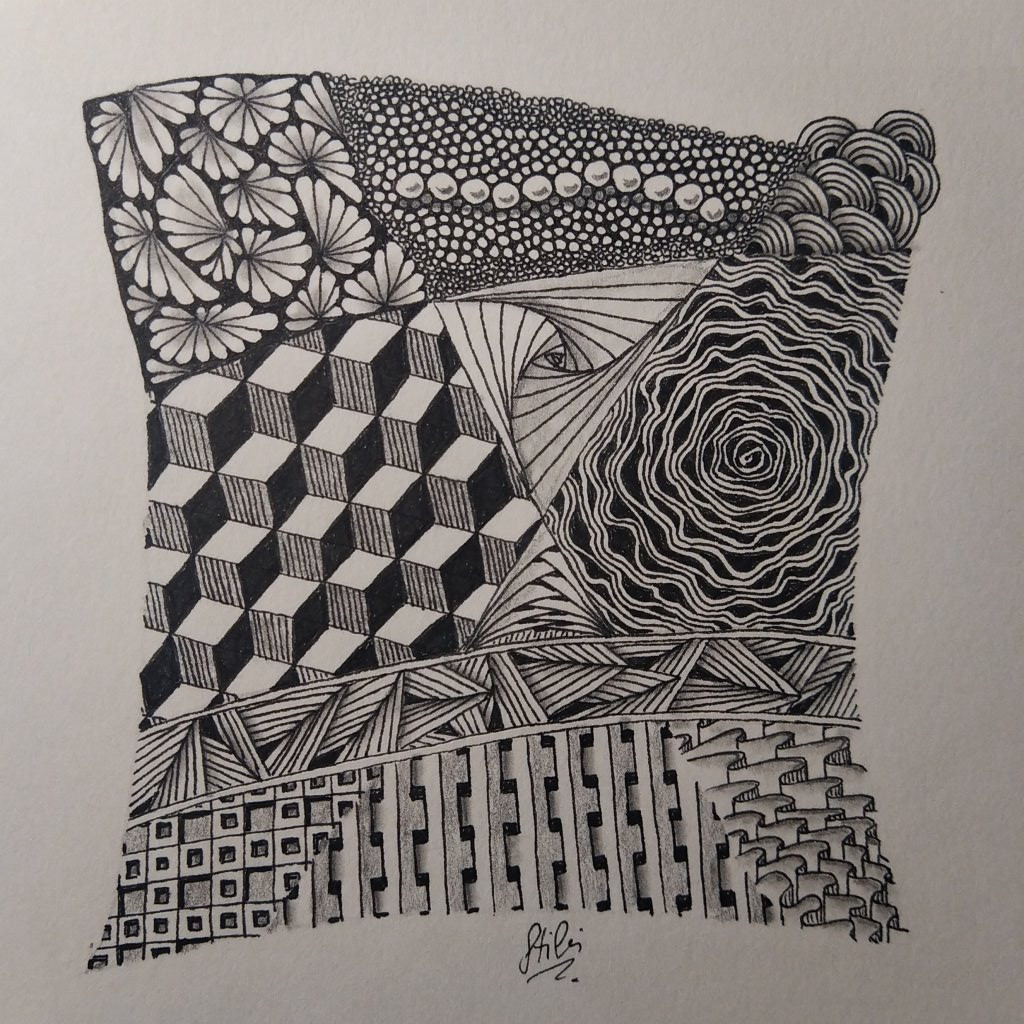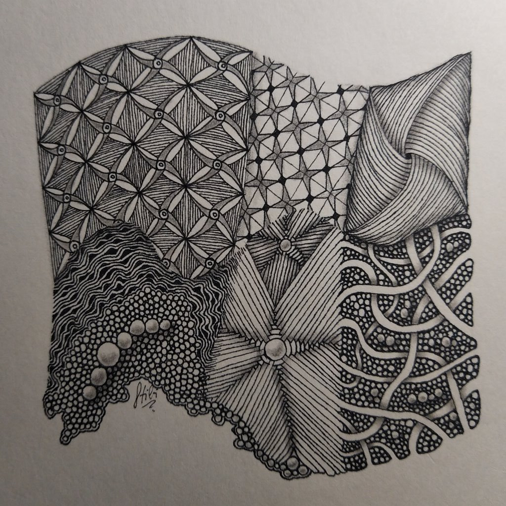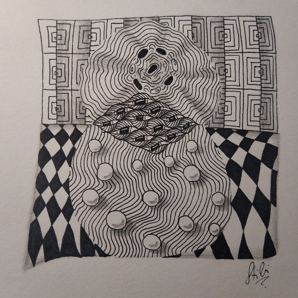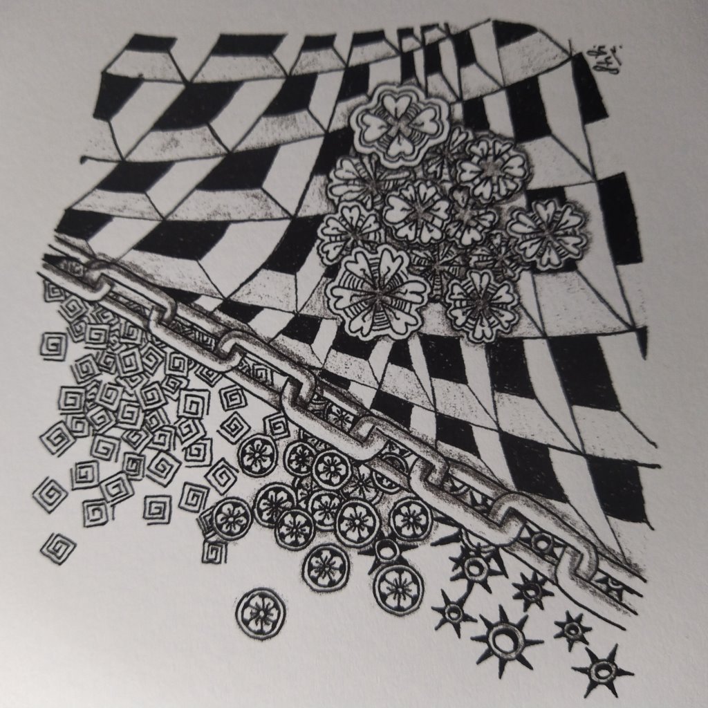 Eines meiner Hobbies ist Tanglen. In den letzten Jahren habe ich immer wieder solche Zeichnungen erstellt, die eigentlich im Grunde nur aus abstrakten Mustern bestehen, welche sich meist ohne vorherige Planung innereinander fügen und dann ein Bild ergeben, in welchen man sich manchmal sogar verlieren kann.