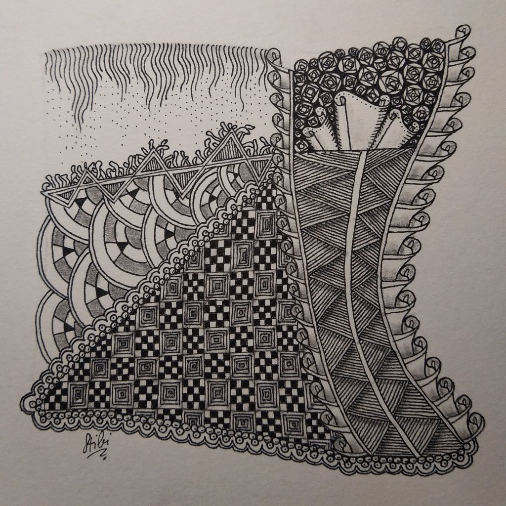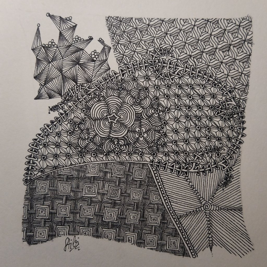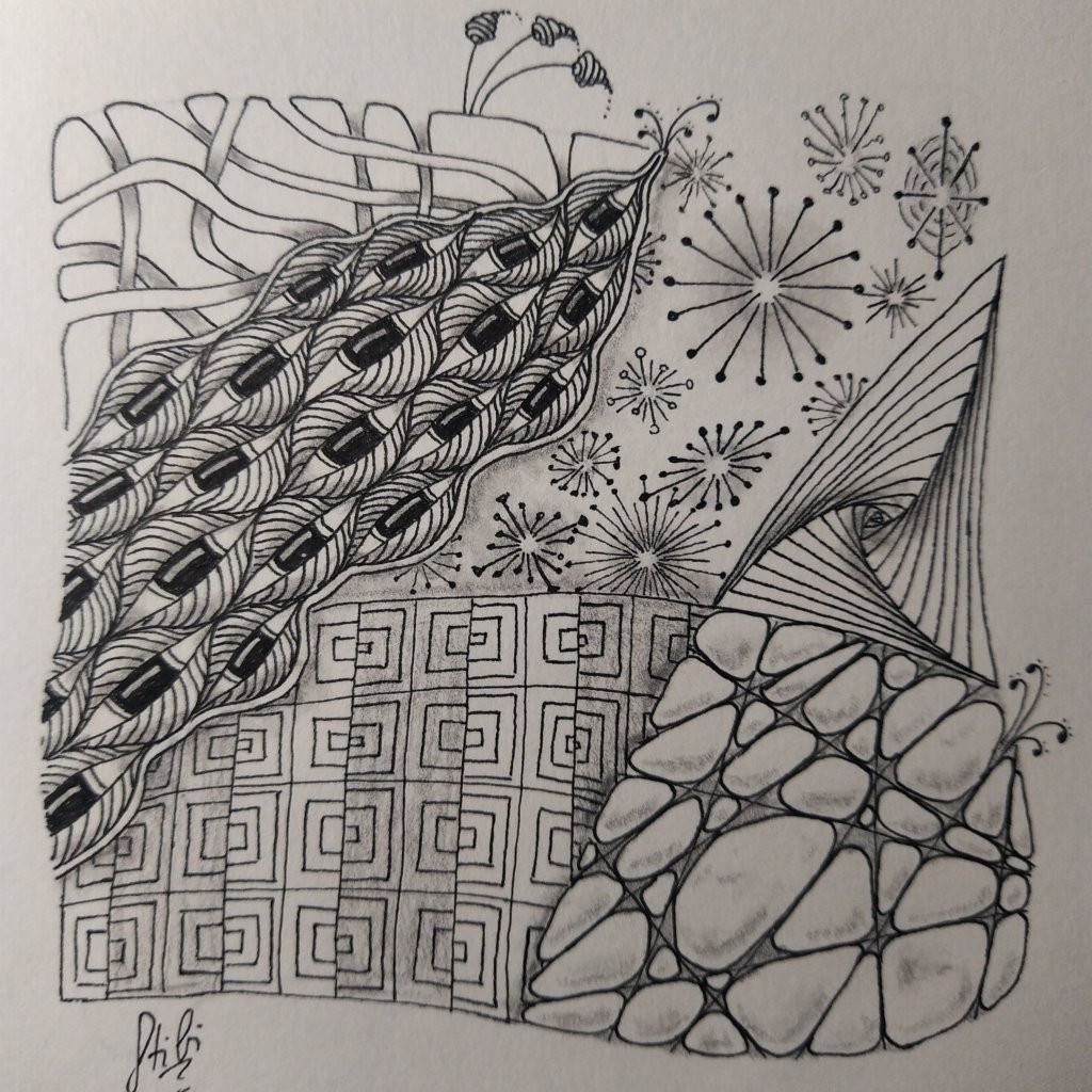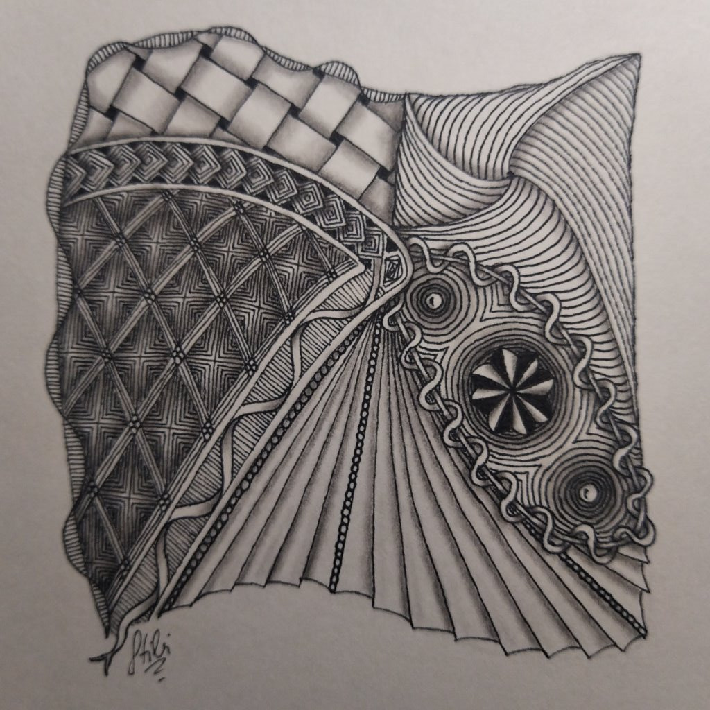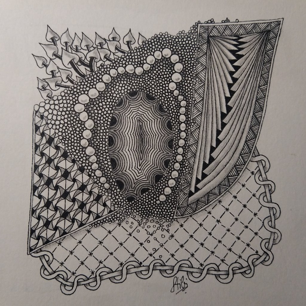 Eines meiner Hobbies ist Tanglen. In den letzten Jahren habe ich immer wieder solche Zeichnungen erstellt, die eigentlich im Grunde nur aus abstrakten Mustern bestehen, welche sich meist ohne vorherige Planung innereinander fügen und dann ein Bild ergeben, in welchen man sich manchmal sogar verlieren kann.