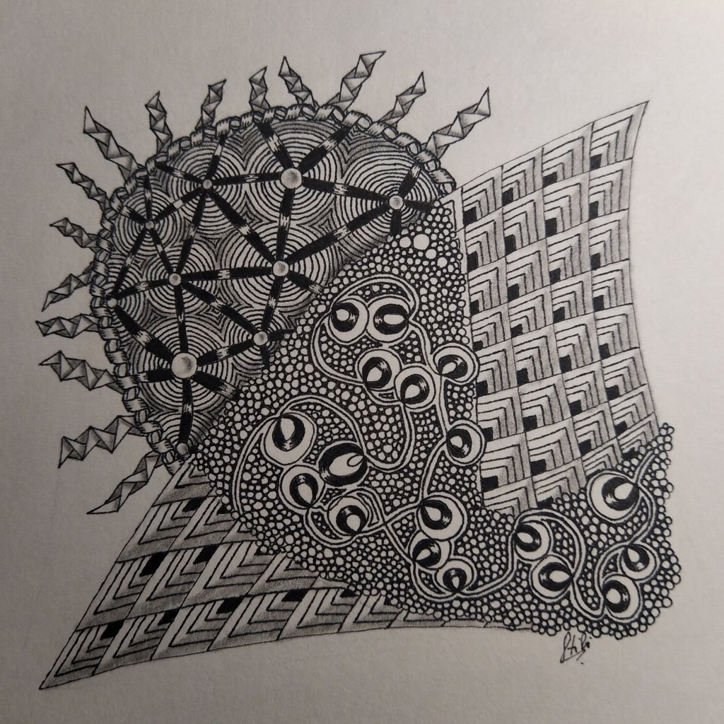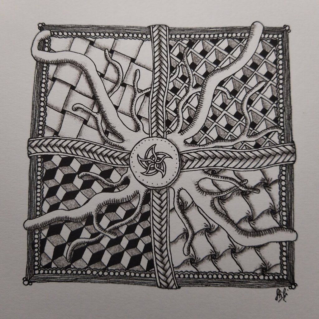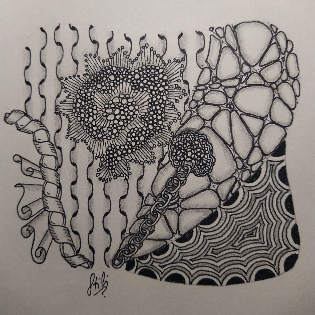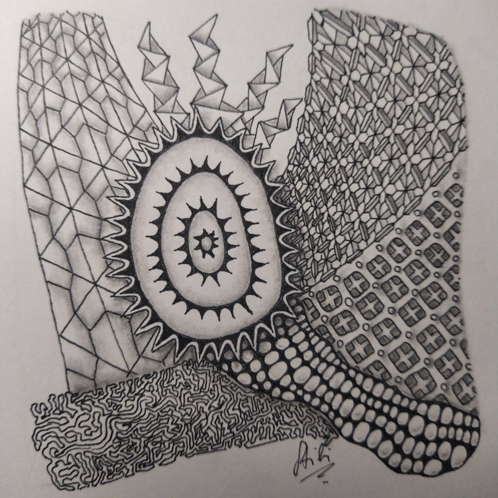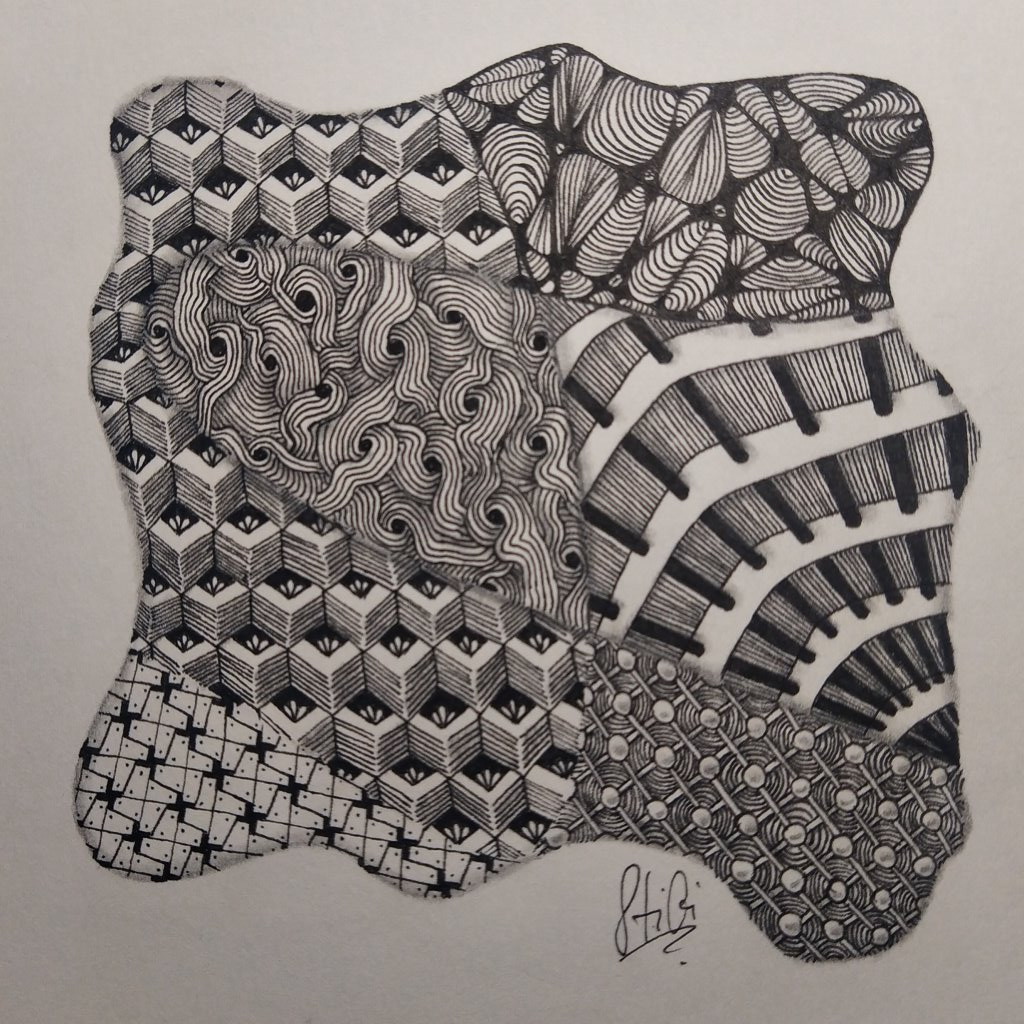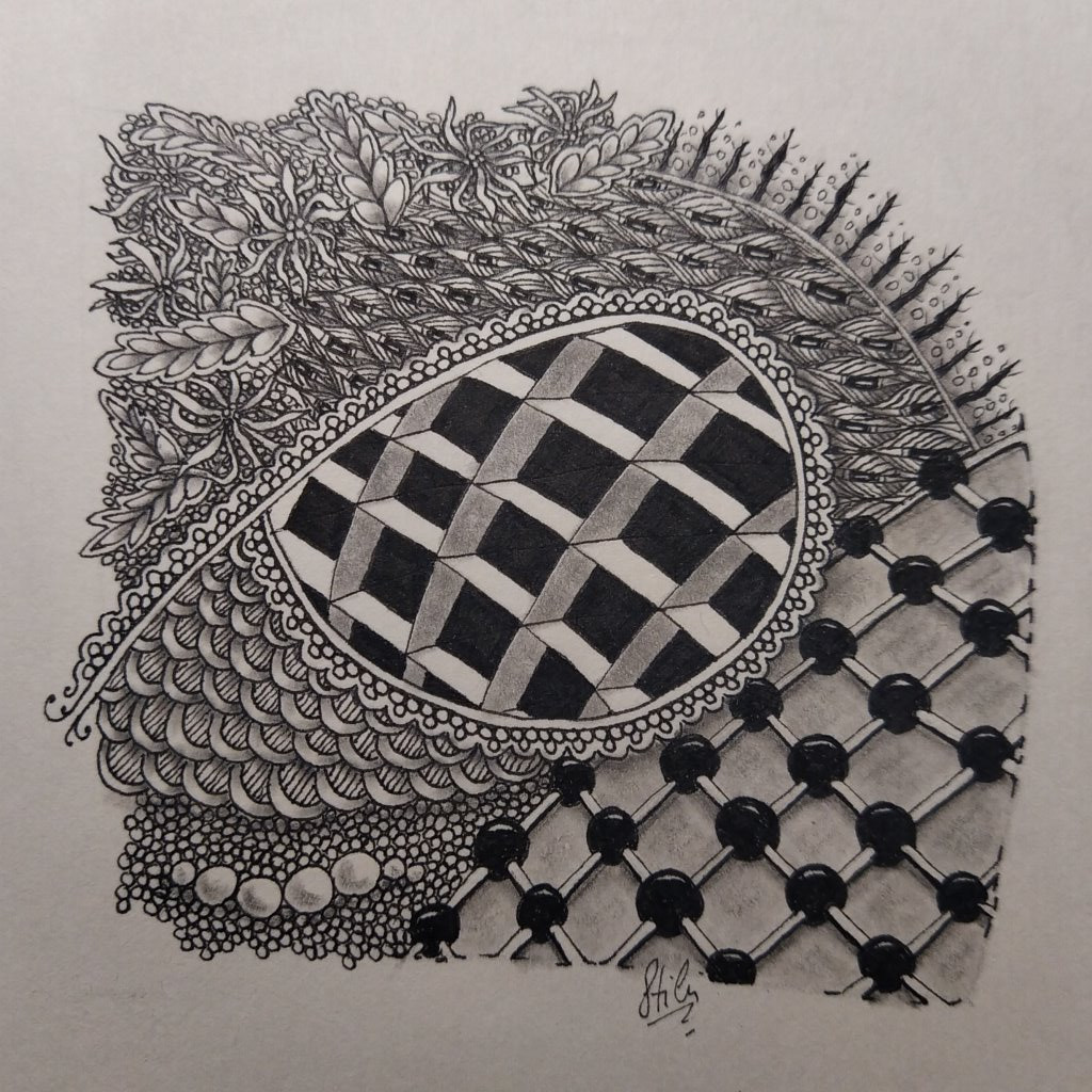 Eines meiner Hobbies ist Tanglen. In den letzten Jahren habe ich immer wieder solche Zeichnungen erstellt, die eigentlich im Grunde nur aus abstrakten Mustern bestehen, welche sich meist ohne vorherige Planung innereinander fügen und dann ein Bild ergeben, in welchen man sich manchmal sogar verlieren kann.