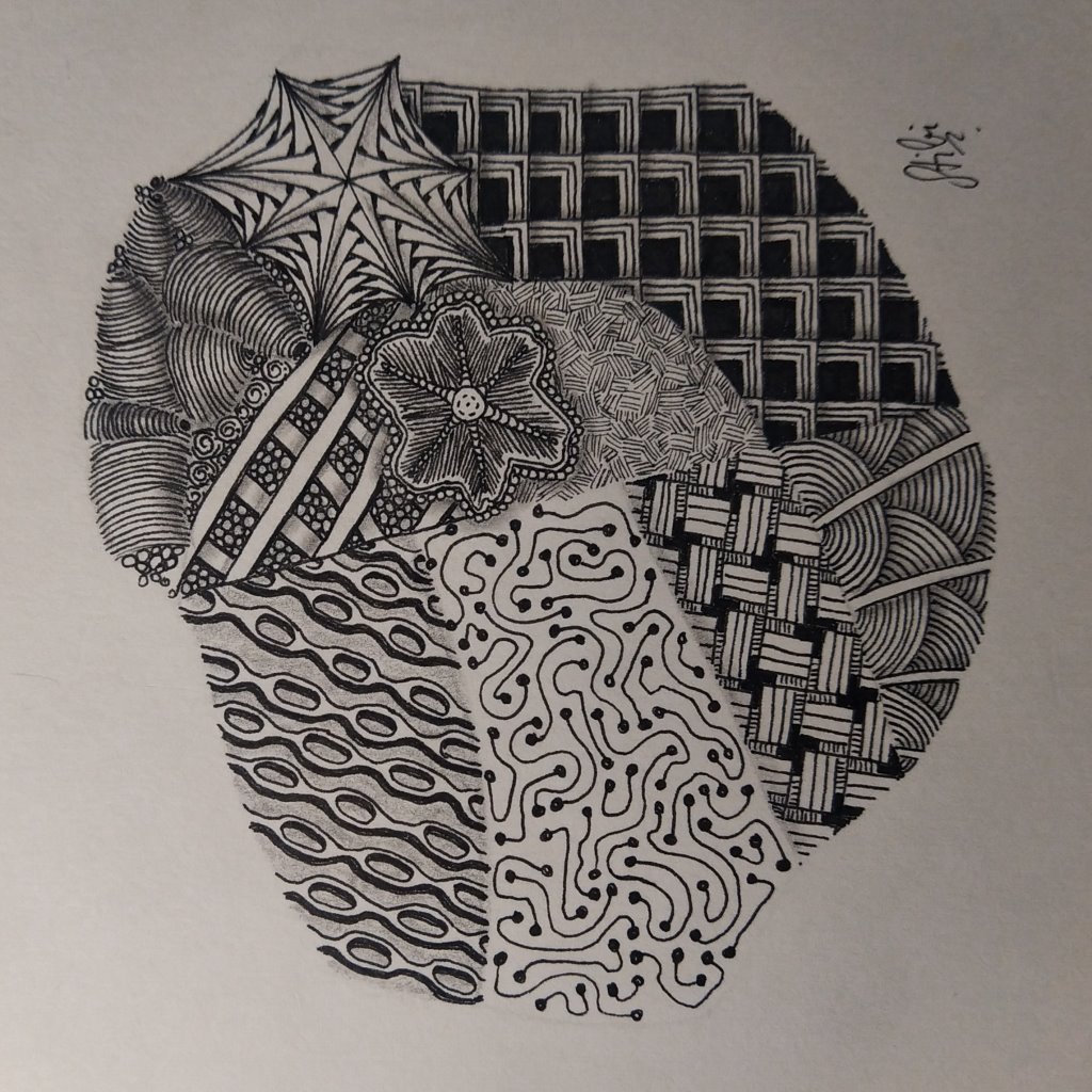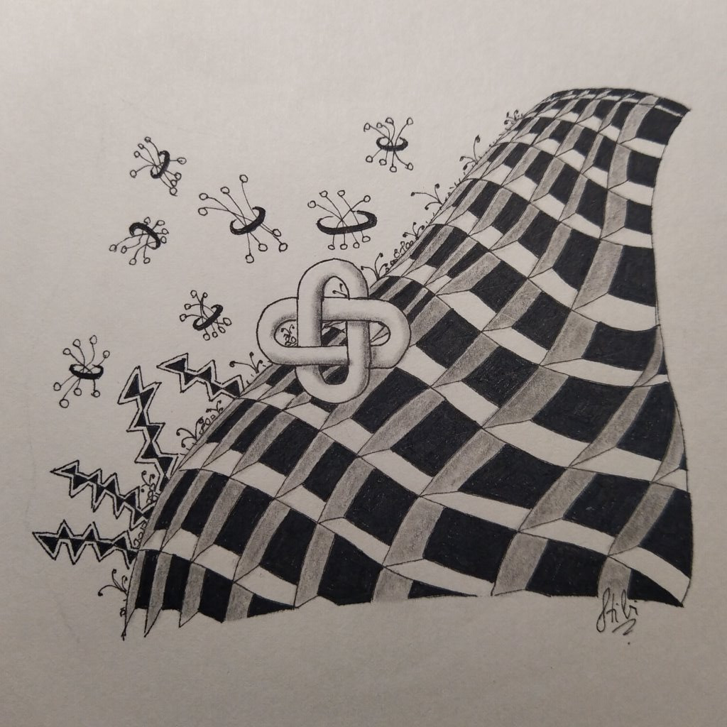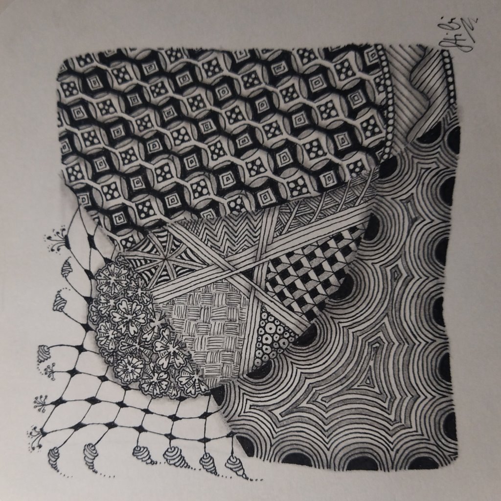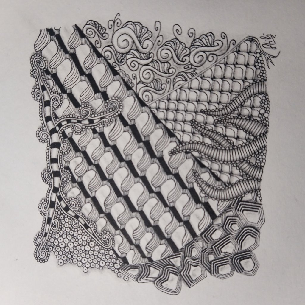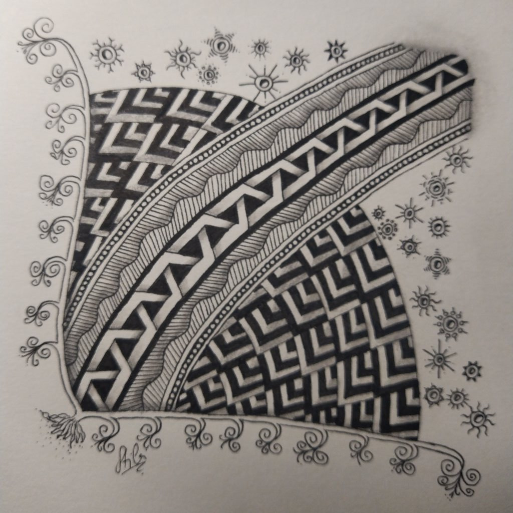 Eines meiner Hobbies ist Tanglen. In den letzten Jahren habe ich immer wieder solche Zeichnungen erstellt, die eigentlich im Grunde nur aus abstrakten Mustern bestehen, welche sich meist ohne vorherige Planung innereinander fügen und dann ein Bild ergeben, in welchen man sich manchmal sogar verlieren kann.