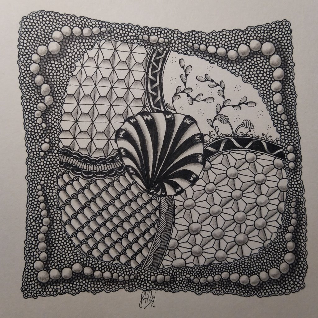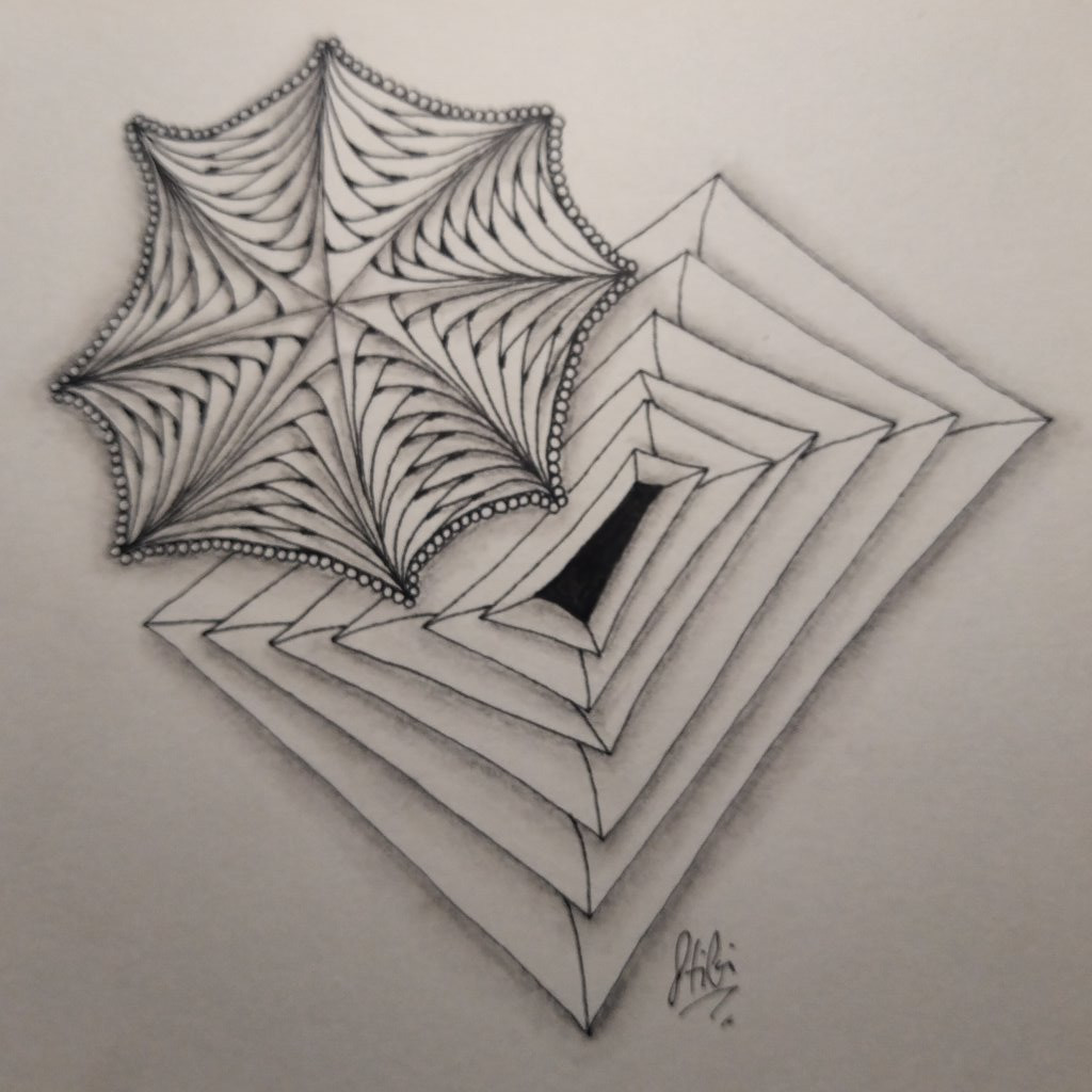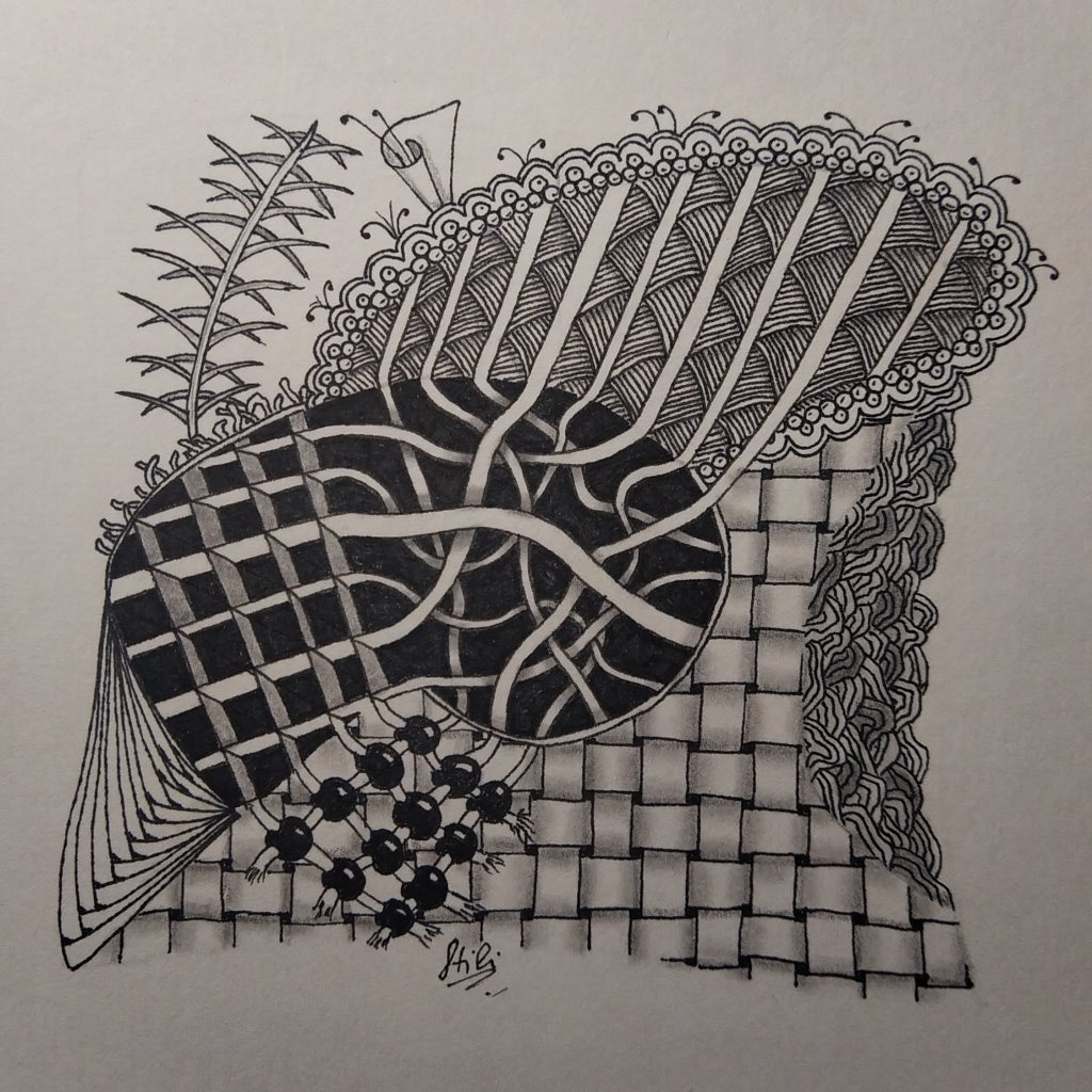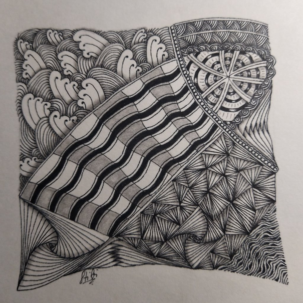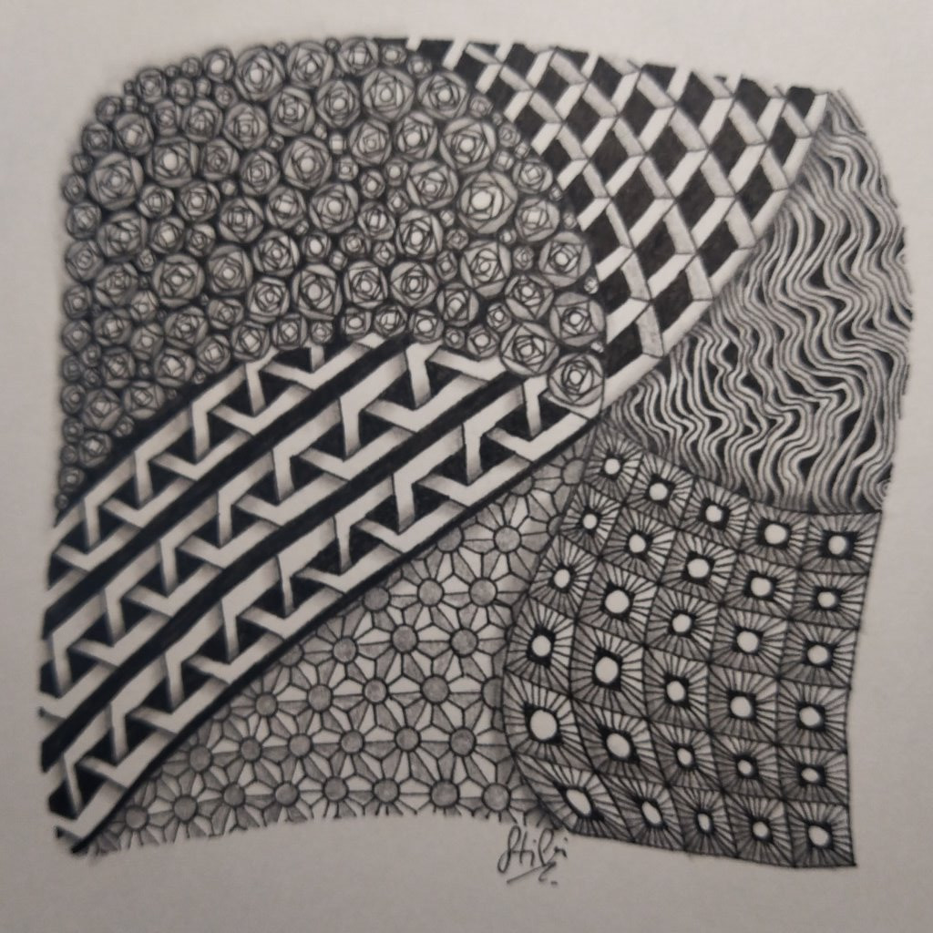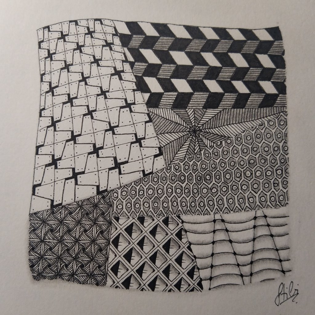 Eines meiner Hobbies ist Tanglen. In den letzten Jahren habe ich immer wieder solche Zeichnungen erstellt, die eigentlich im Grunde nur aus abstrakten Mustern bestehen, welche sich meist ohne vorherige Planung innereinander fügen und dann ein Bild ergeben, in welchen man sich manchmal sogar verlieren kann.