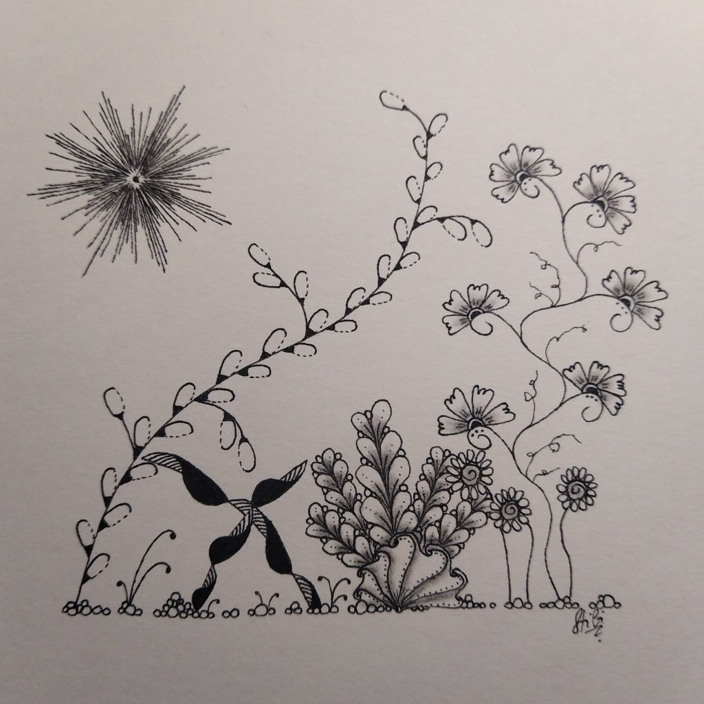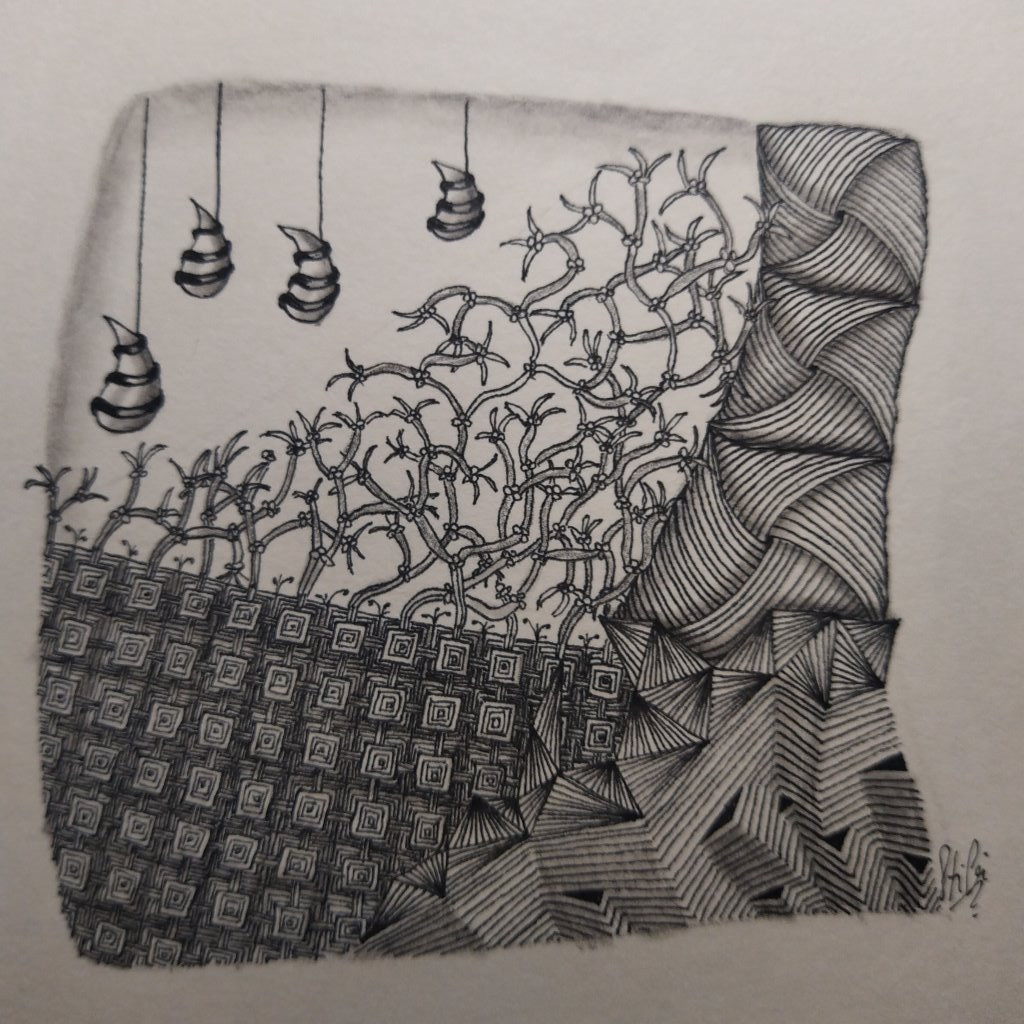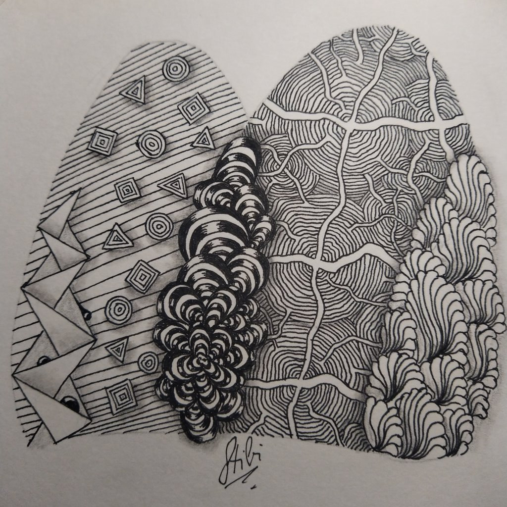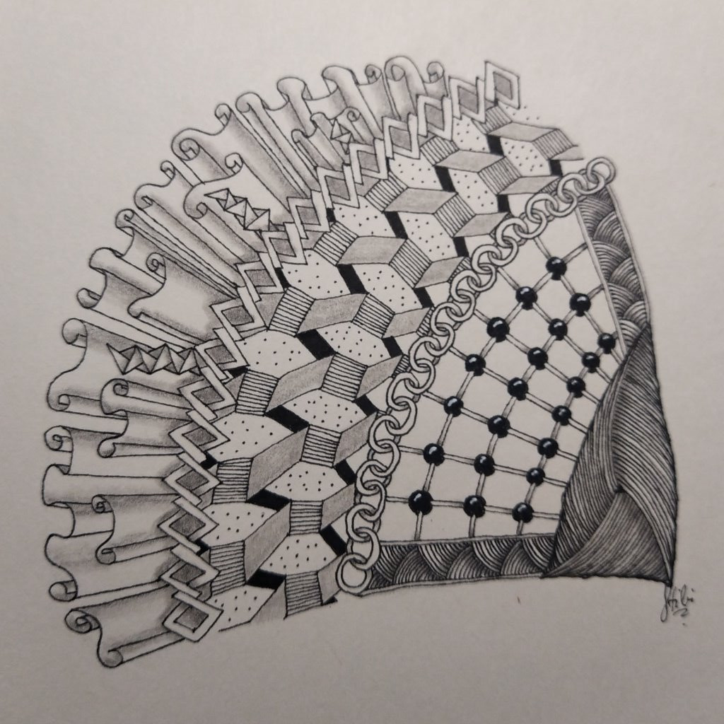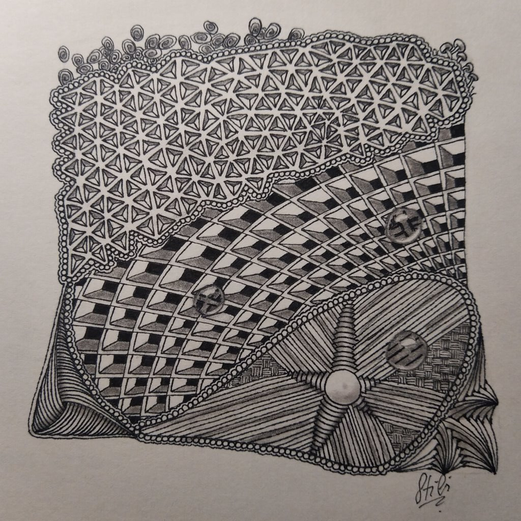 Eines meiner Hobbies ist Tanglen. In den letzten Jahren habe ich immer wieder solche Zeichnungen erstellt, die eigentlich im Grunde nur aus abstrakten Mustern bestehen, welche sich meist ohne vorherige Planung innereinander fügen und dann ein Bild ergeben, in welchen man sich manchmal sogar verlieren kann.