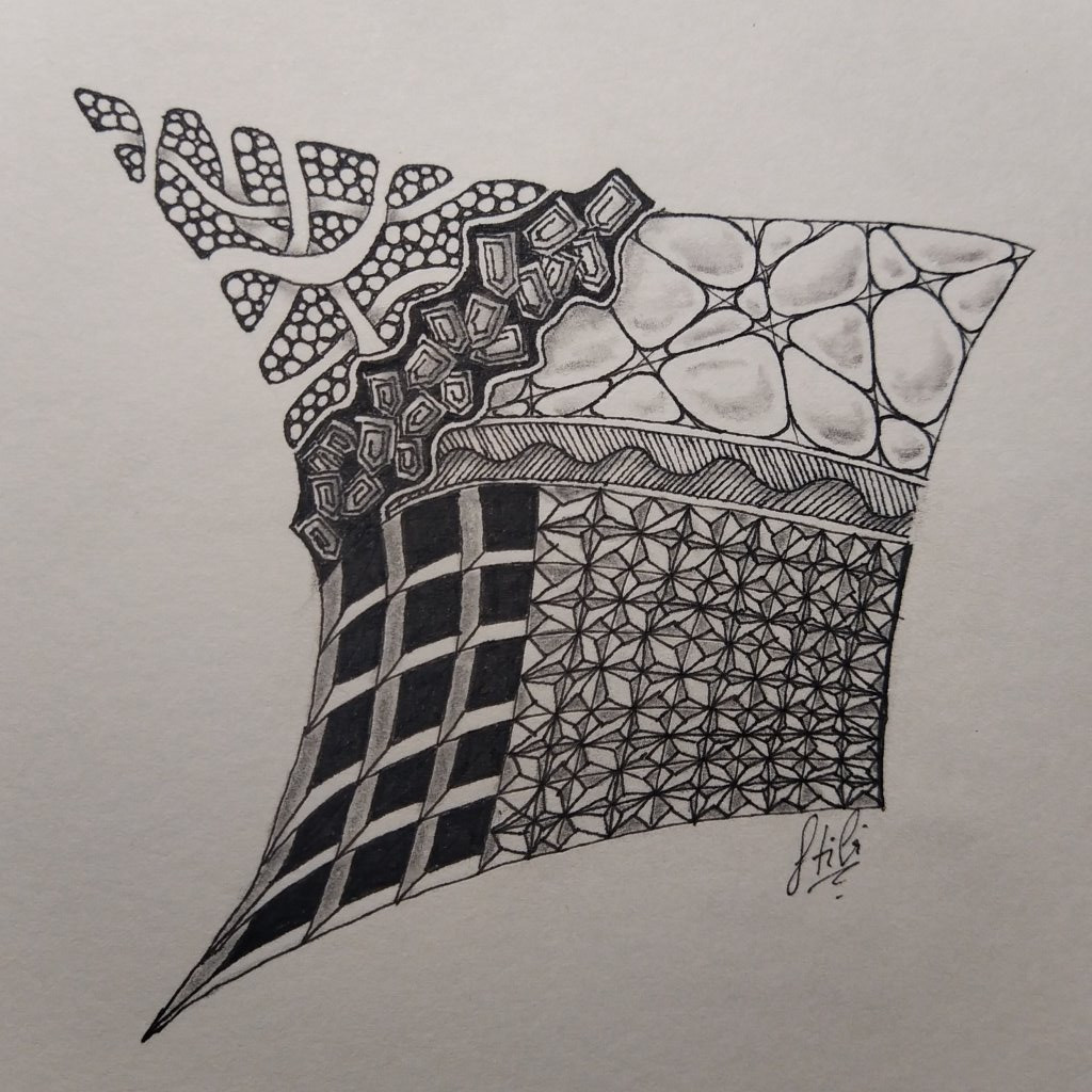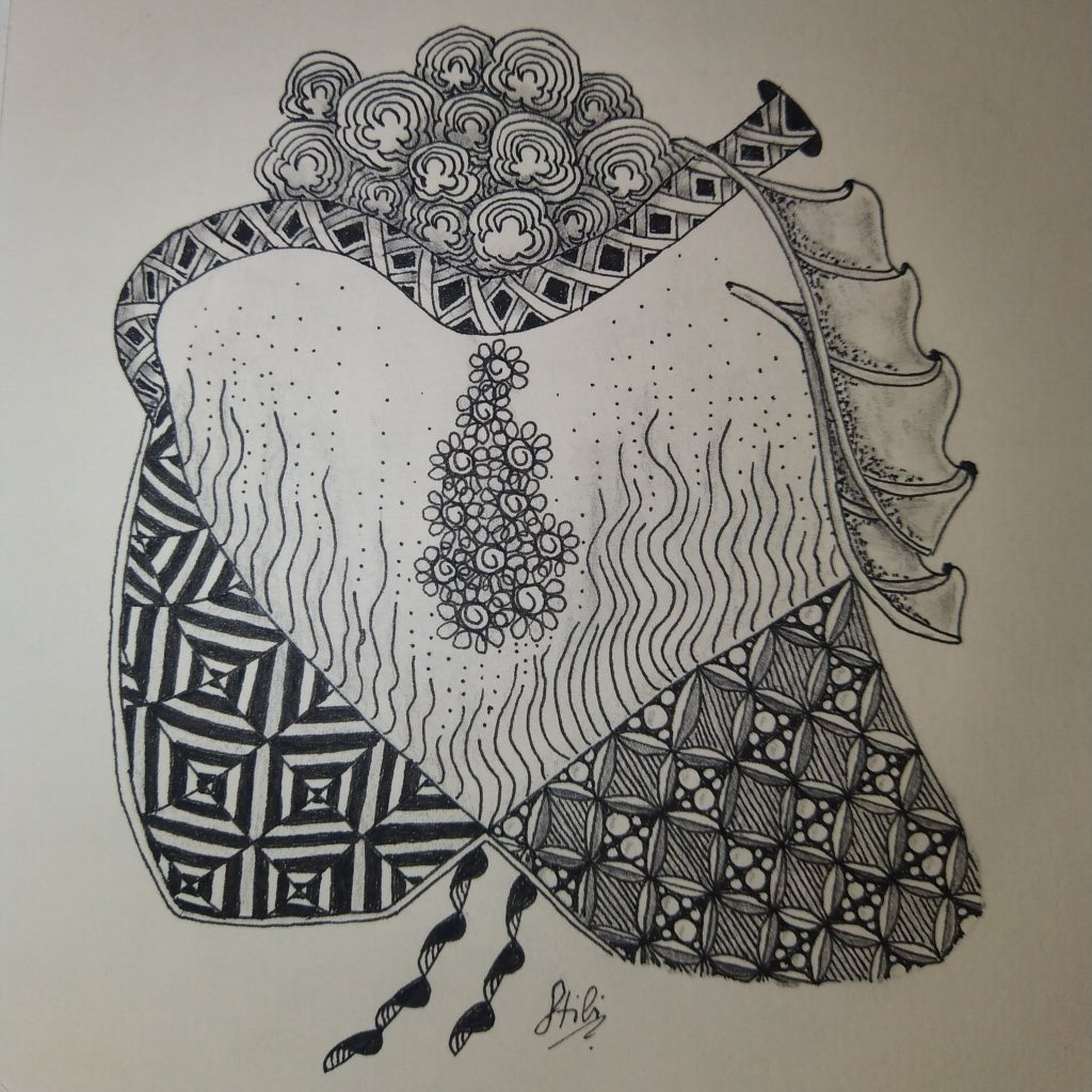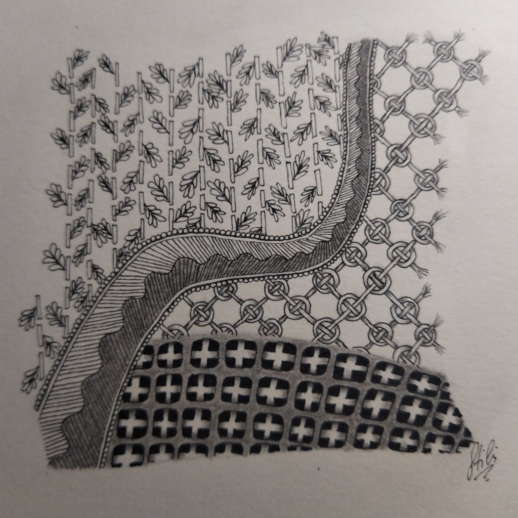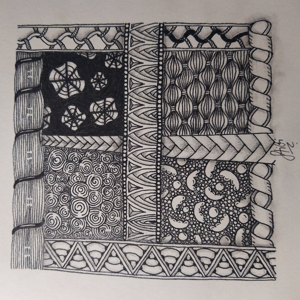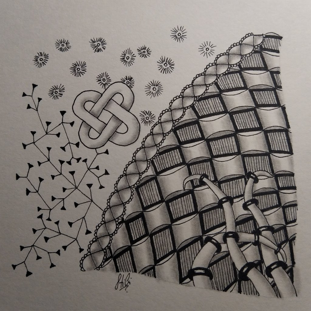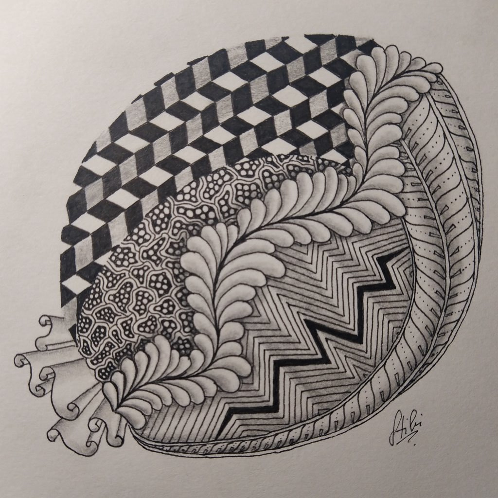 Eines meiner Hobbies ist Tanglen. In den letzten Jahren habe ich immer wieder solche Zeichnungen erstellt, die eigentlich im Grunde nur aus abstrakten Mustern bestehen, welche sich meist ohne vorherige Planung innereinander fügen und dann ein Bild ergeben, in welchen man sich manchmal sogar verlieren kann.