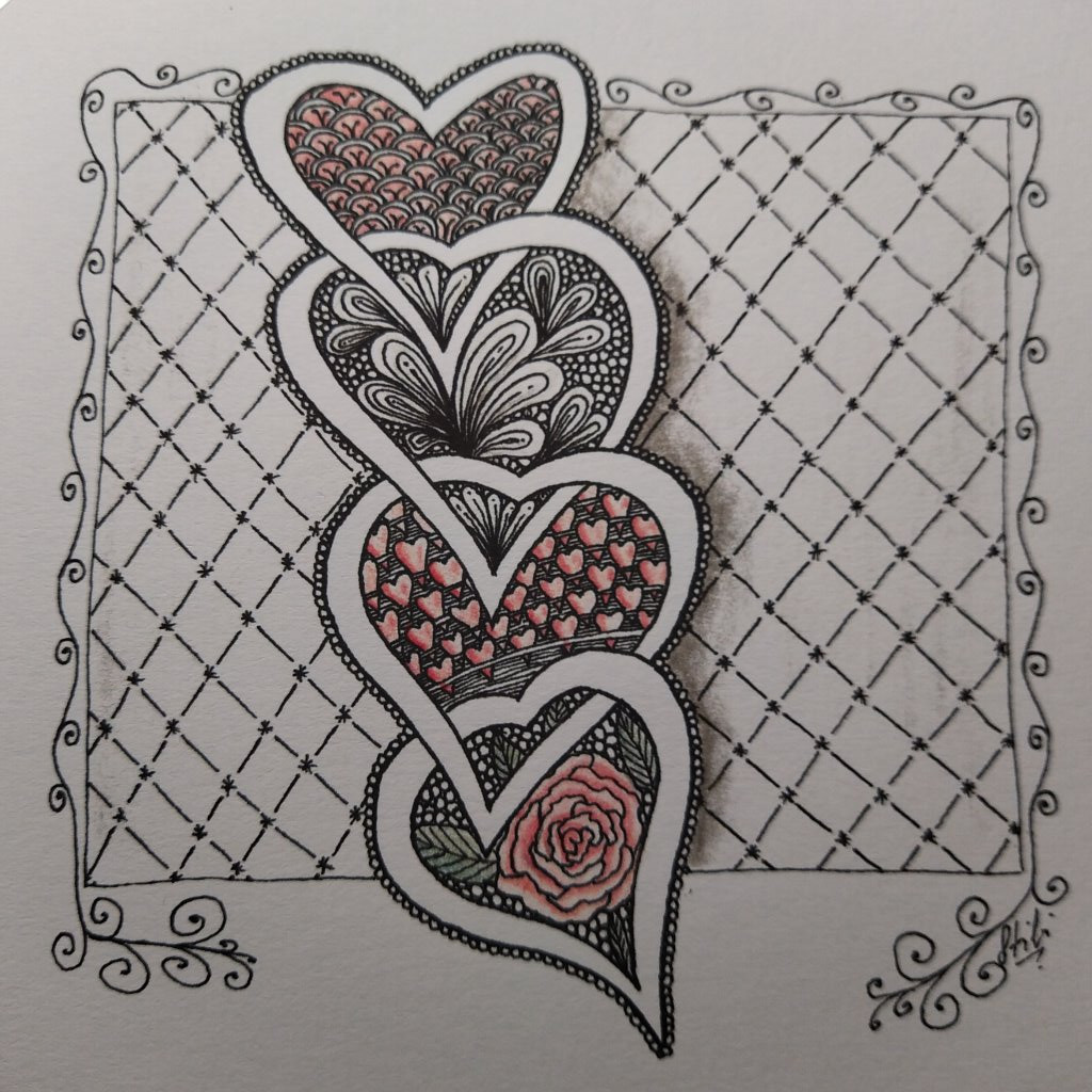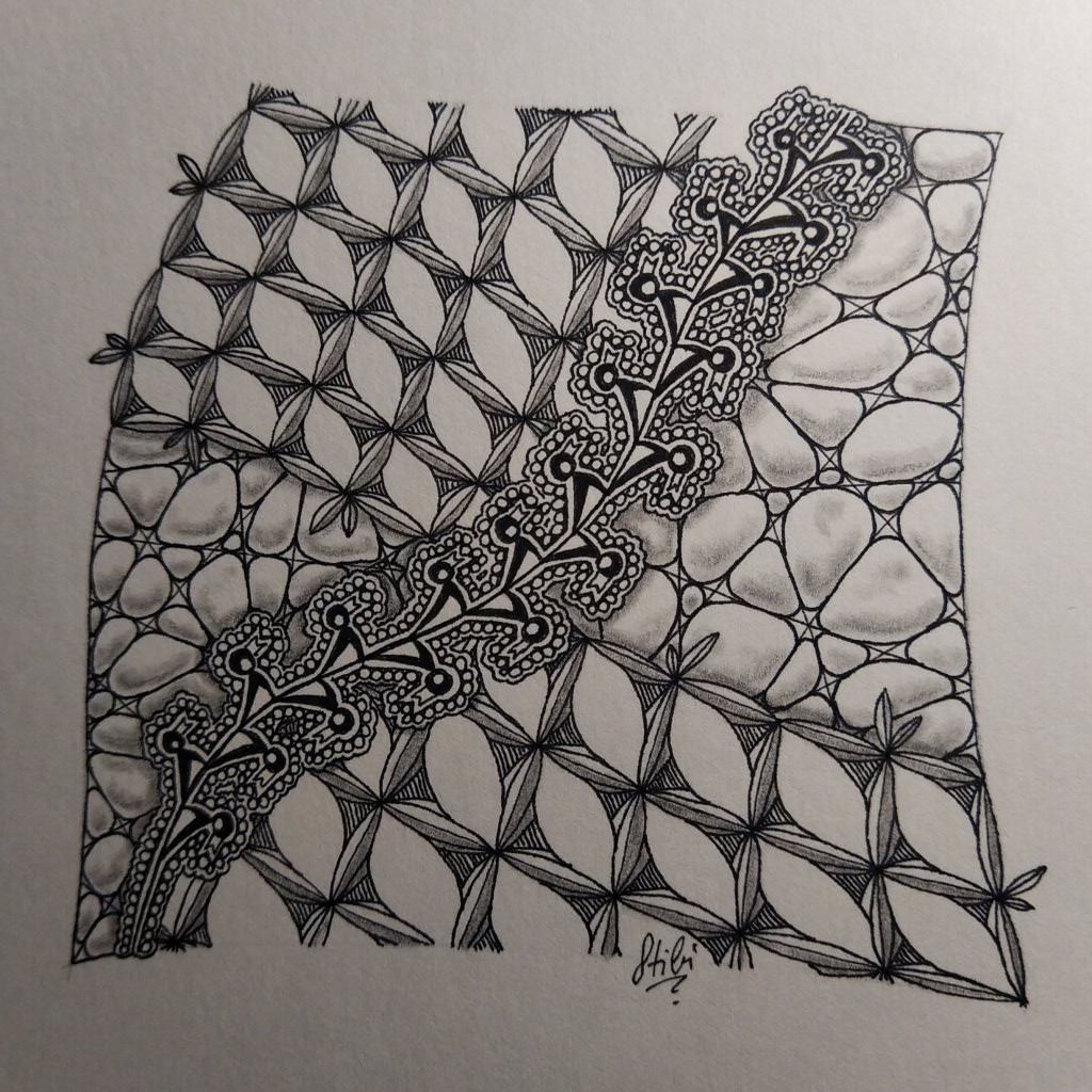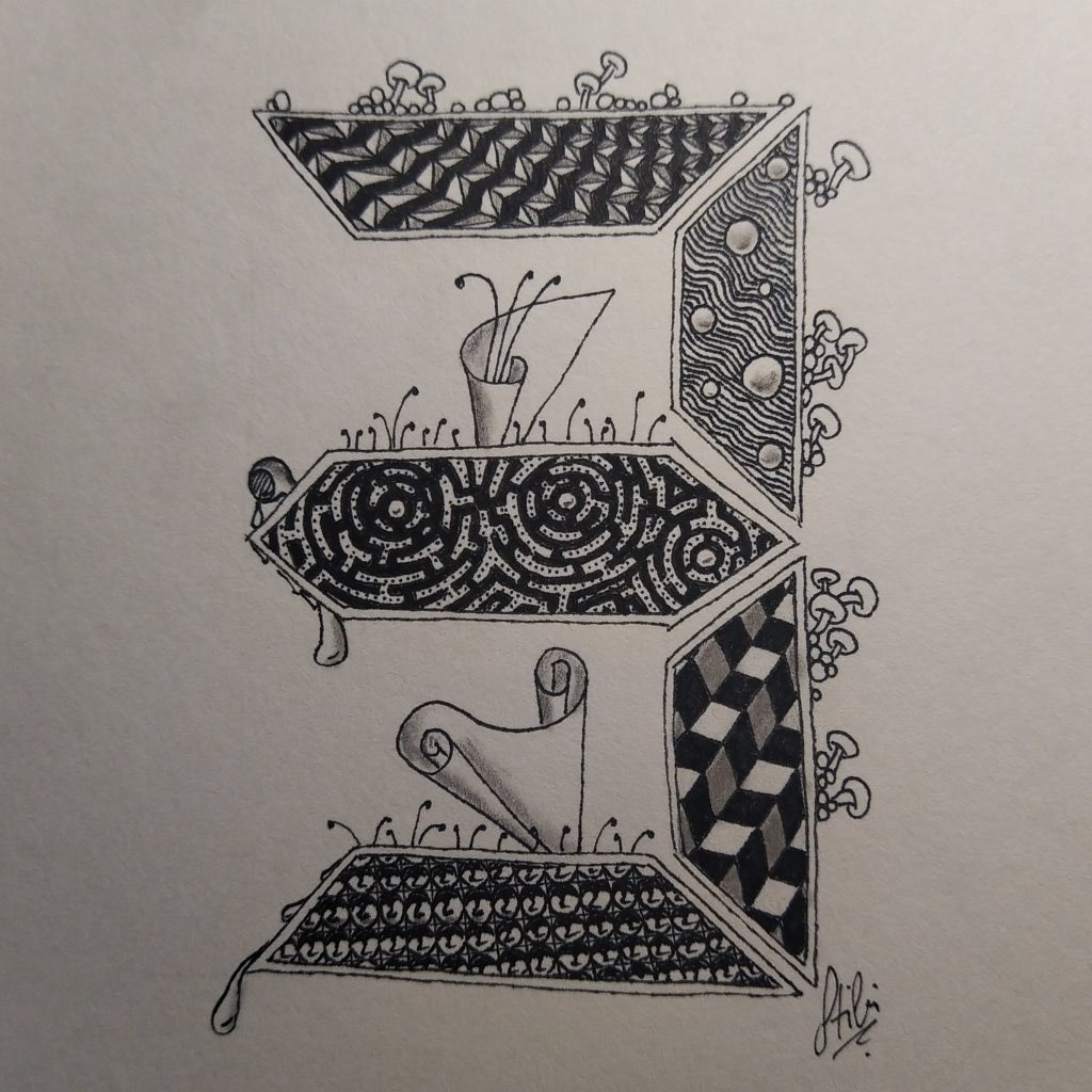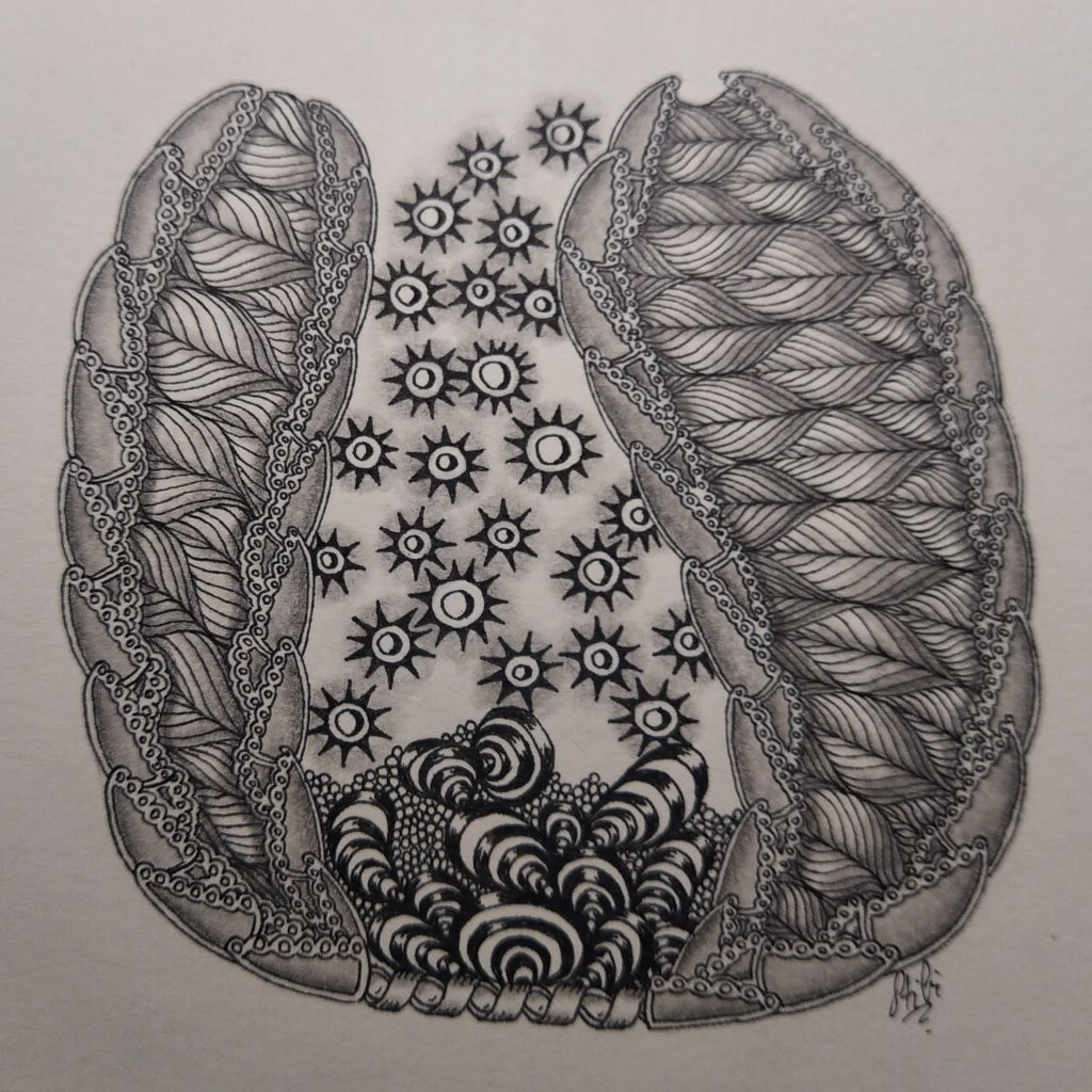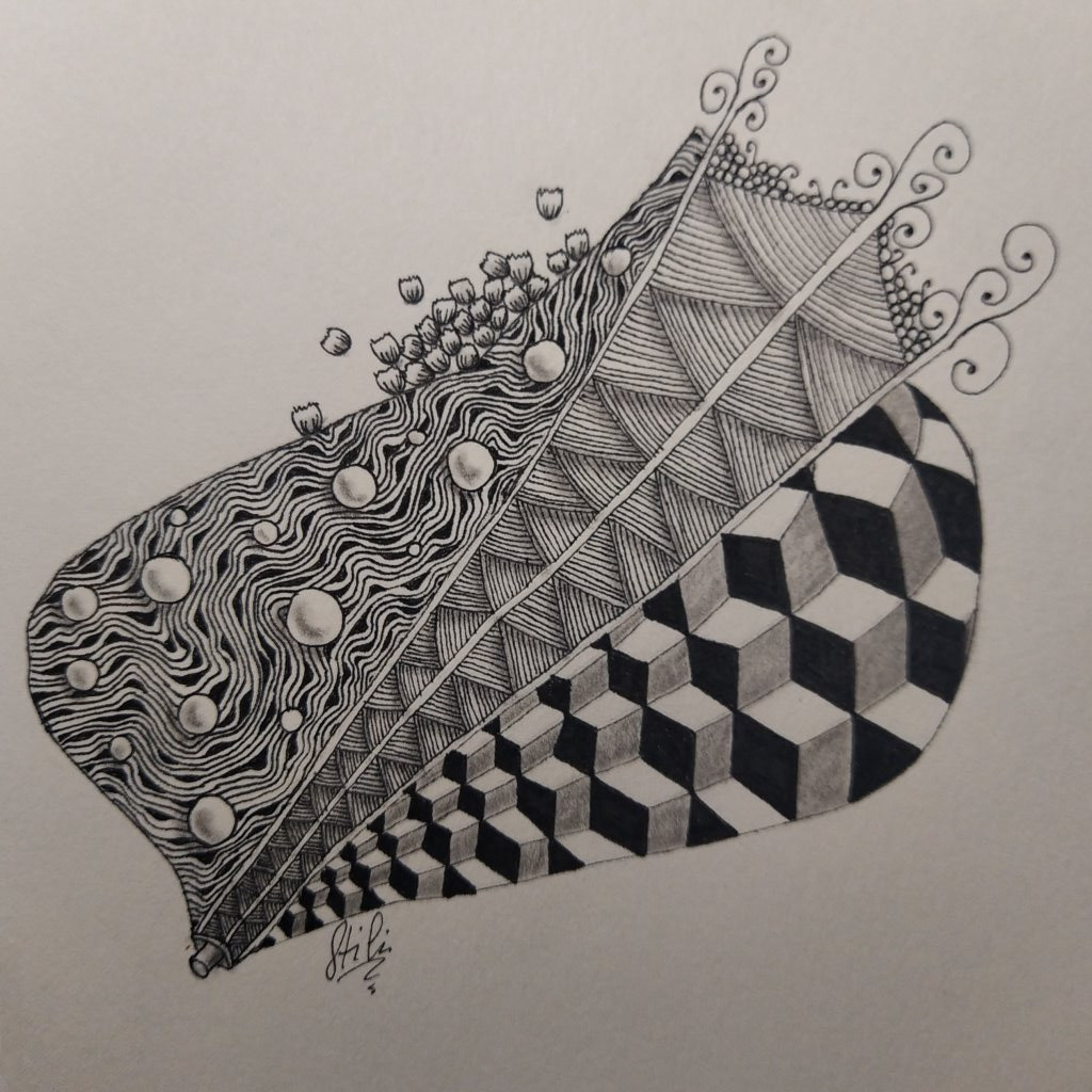 Eines meiner Hobbies ist Tanglen. In den letzten Jahren habe ich immer wieder solche Zeichnungen erstellt, die eigentlich im Grunde nur aus abstrakten Mustern bestehen, welche sich meist ohne vorherige Planung innereinander fügen und dann ein Bild ergeben, in welchen man sich manchmal sogar verlieren kann.