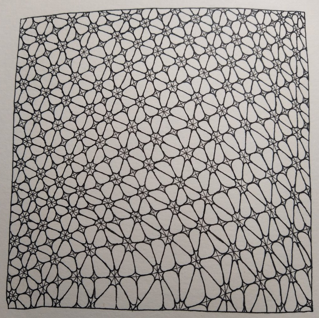Die Bilder die hier zu sehen sind, habe ich alle auf demselben Papier gezeichnet. Ein quadratischer Skizzenblock mit den Maßen 15 x 15 cm. Für mich die ideale Grö0e, wobei in der Literatur, die bei dieser Technik auch von Zentangle spricht eigentlich noch kleinere Formate benutzt werden.