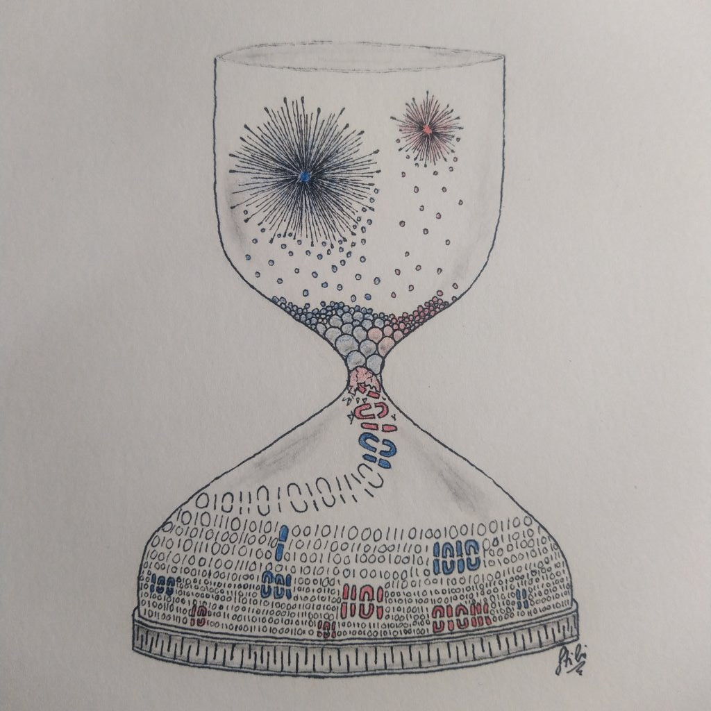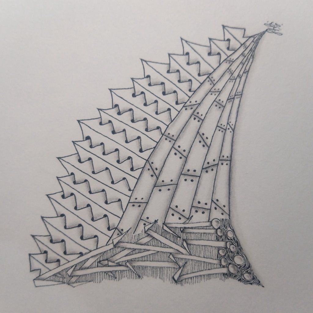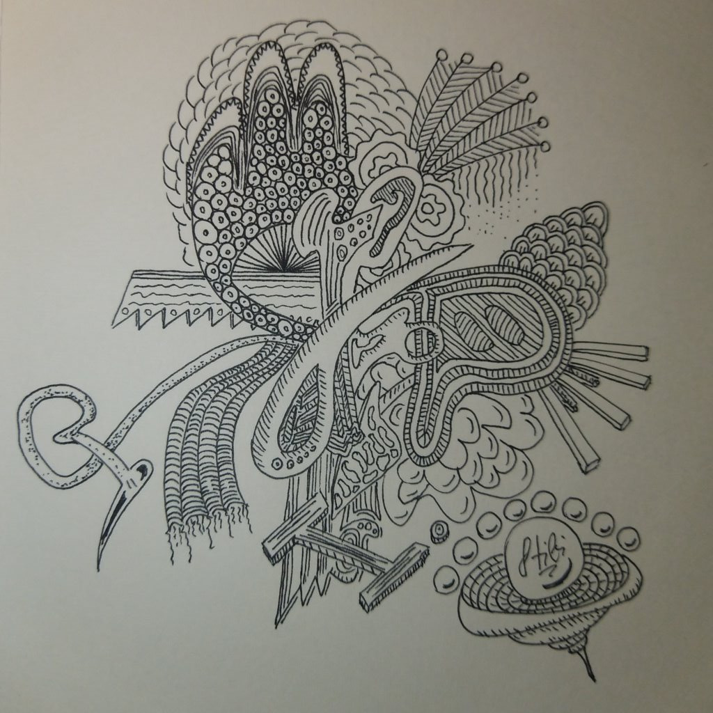 In manchen Bildern versucht man auch zu interpretieren was es darstellen könnte. Wie gesagt, es gab bei den Bildern kaum eine Planung oder Idee was da herauskommen könnte. Sie sind meist einfach nur entstanden. Beim Zeichnen selbst verliert man sich oft in den wiederkehrenden Strichen der Muster, was ziemlich beruhigend wirkt und ein guter Ausgleich zum meist stressigen Alltag.